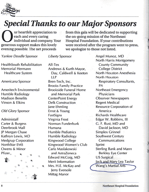 | Wang's Martial Arts's student donated $2000.00